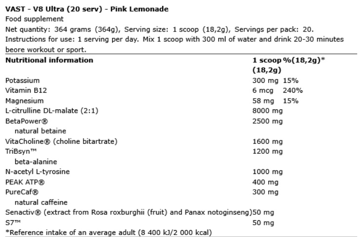 ![[VAST V8 Ultra 20 Serviri Pink Lemonade 364g][Energie & N.O. (oxid nitric) ] VAST V8 Ultra 20 Serviri Pink Lemonade 364g, [2],advancednutrition.ro](https://cdn.contentspeed.ro/0769429911.websales.ro/cs-content/cs-photos/products/original/vast-v8-ultra-20-serviri_11109_2_1776162831125.jpg)