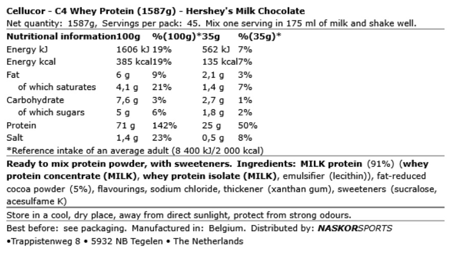 C4 Whey Protein 1587g Hershey Milk Chocolate